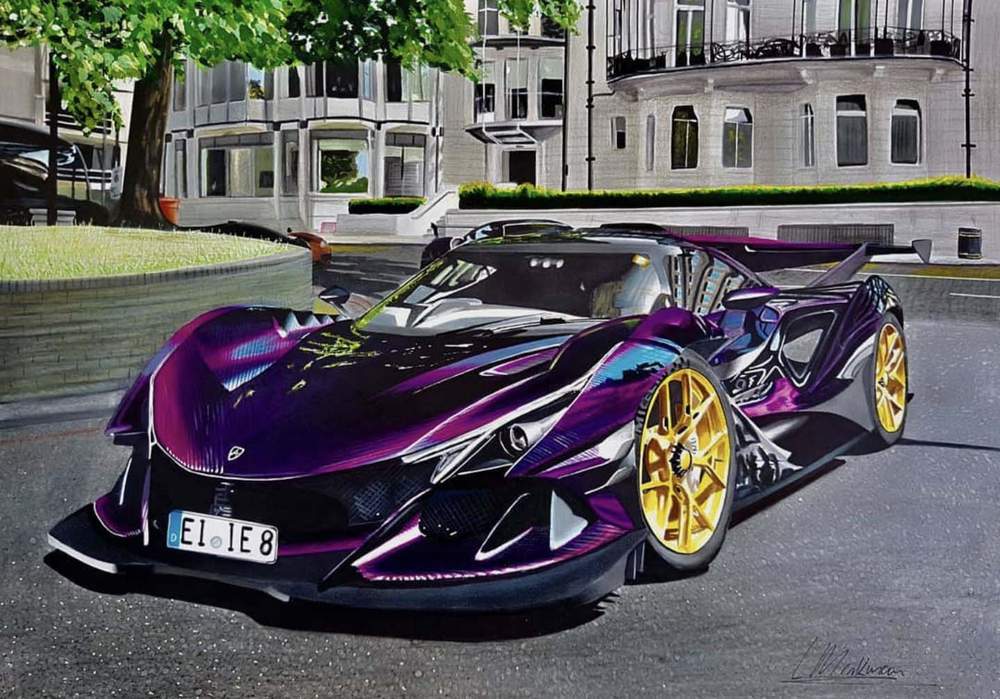 You can also use this method to draw toned carbon fiber like in the drawing I made below. The car in this drawing has toned purple carbon fiber. First I colored the whole car purple without any of the lines. Later on, I added those lines with 2 fineliner of different shades of purple.
