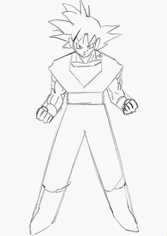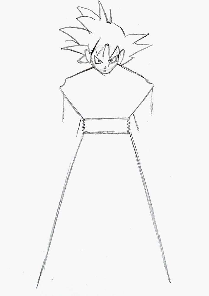 Step 2: Sketch The Outline Of Goku's Arms & Legs