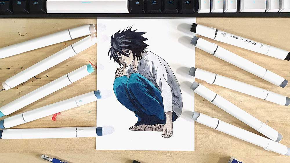 To finish the drawing, I colored L with Ohuhu Honolulu alcohol-based markers.