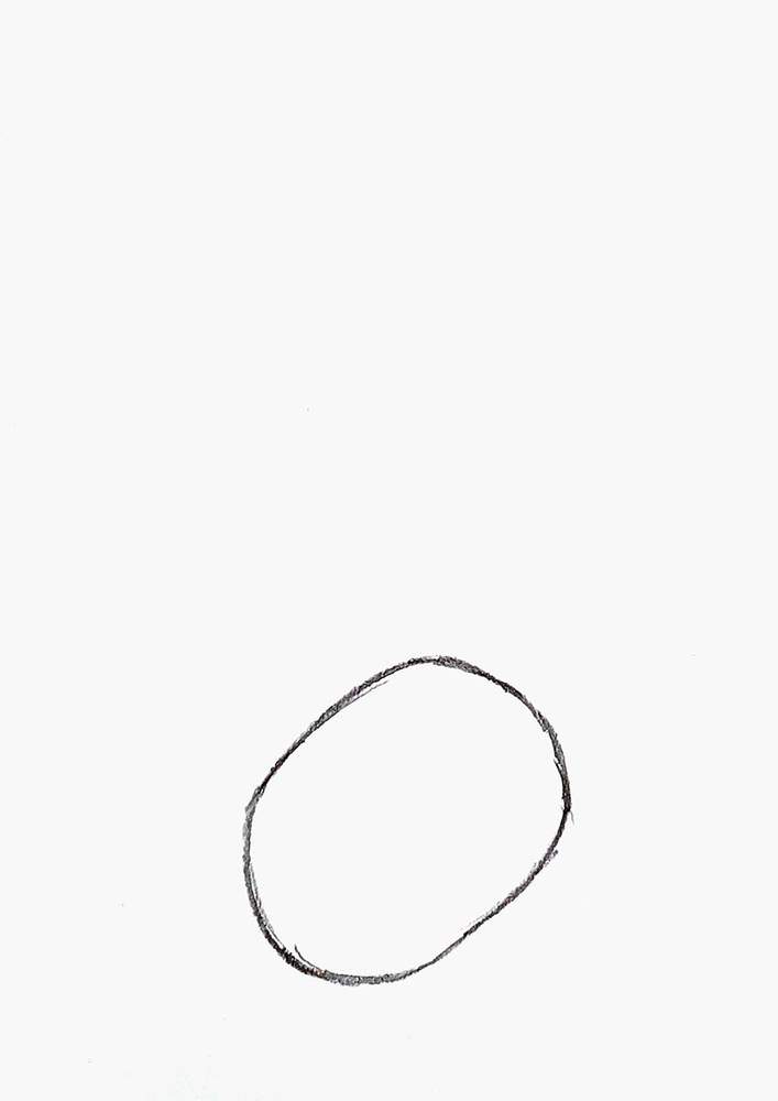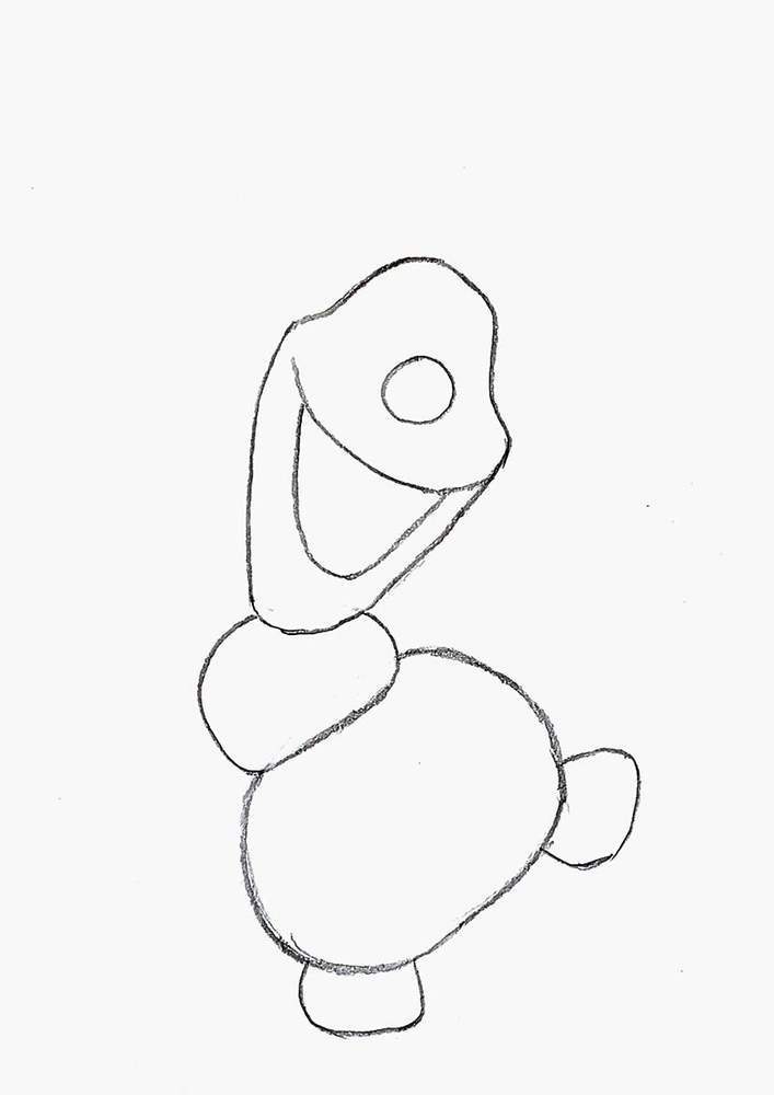 To start off the drawing of Olaf, I first sketched a potato-shaped blob towards the bottom of my paper. It's a little bit tilted to the left.
