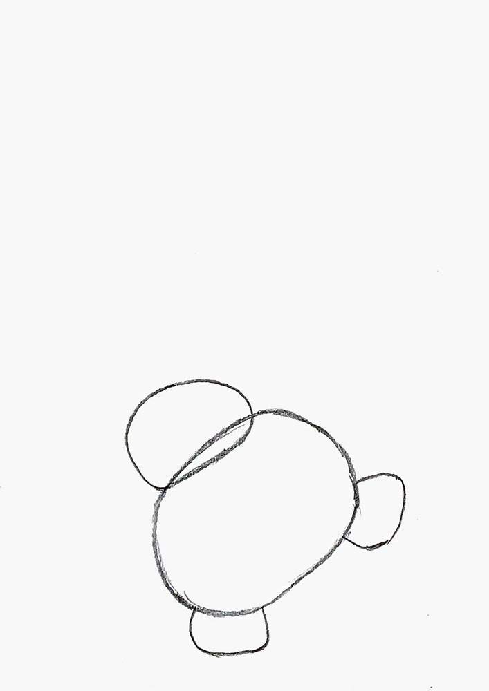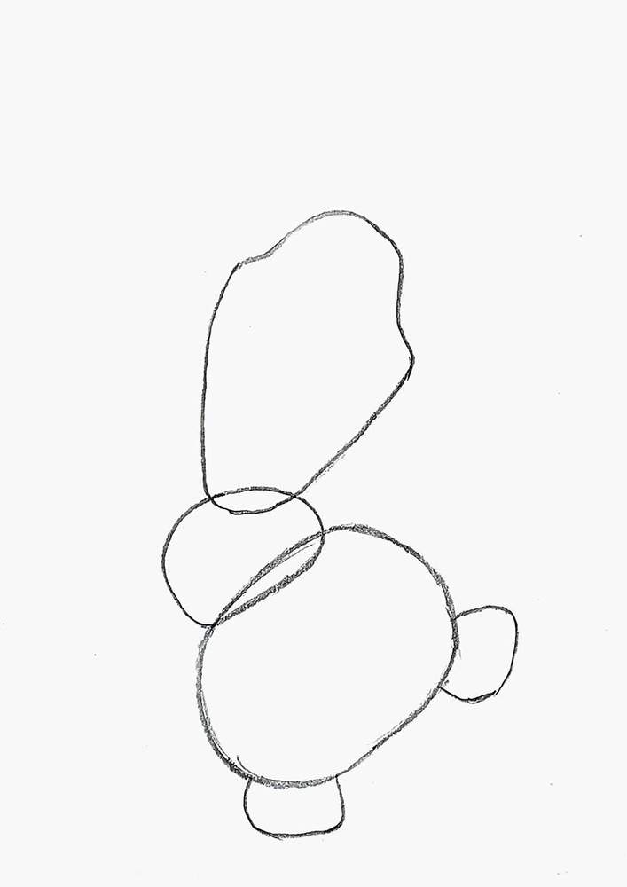 Next, I sketched 2 parallel scribbly lines on either side of the blob-shape below his head.