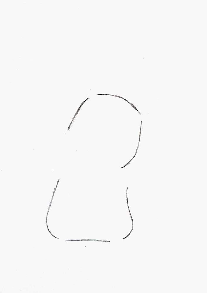 To sketch Pikachu, I first marked his bottom edge with a short straight line.