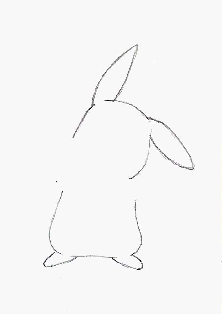 After that, I sketched his ears which are long and pretty pointy, and I sketched his feet which are short and more round.