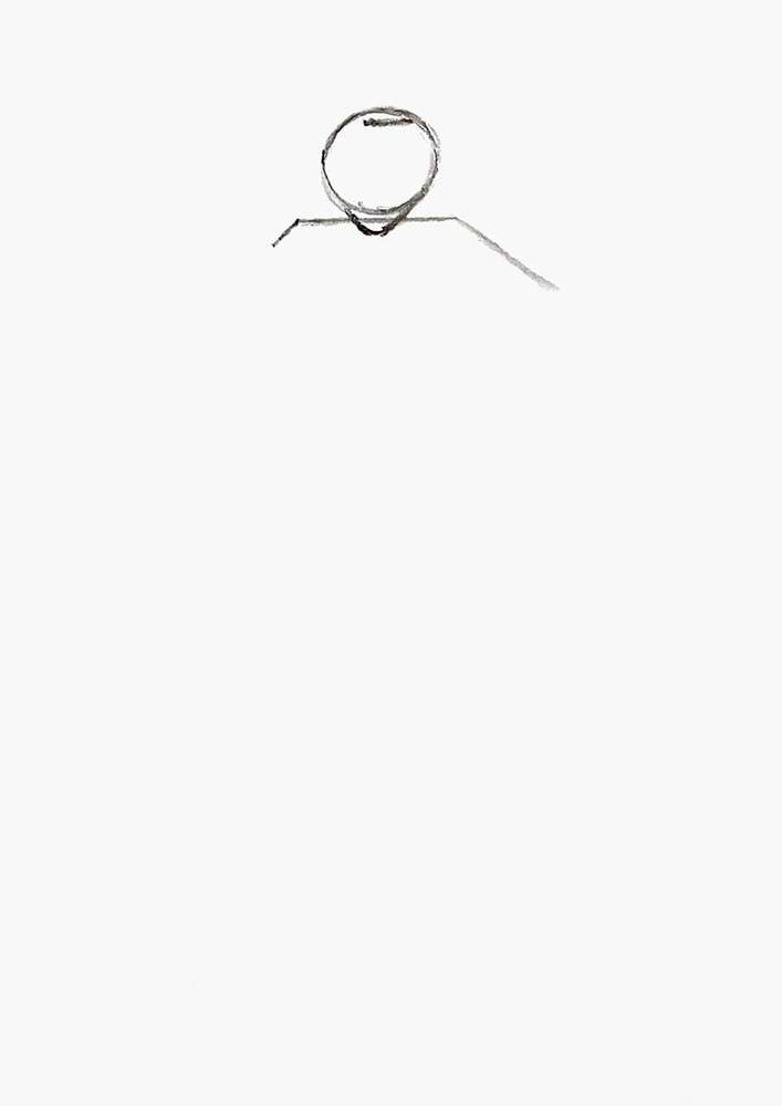Below the short line on his left arm, I sketched a triangle with the right edge pointing down and a little bit to the right to end just below the halfway point of the paper.
