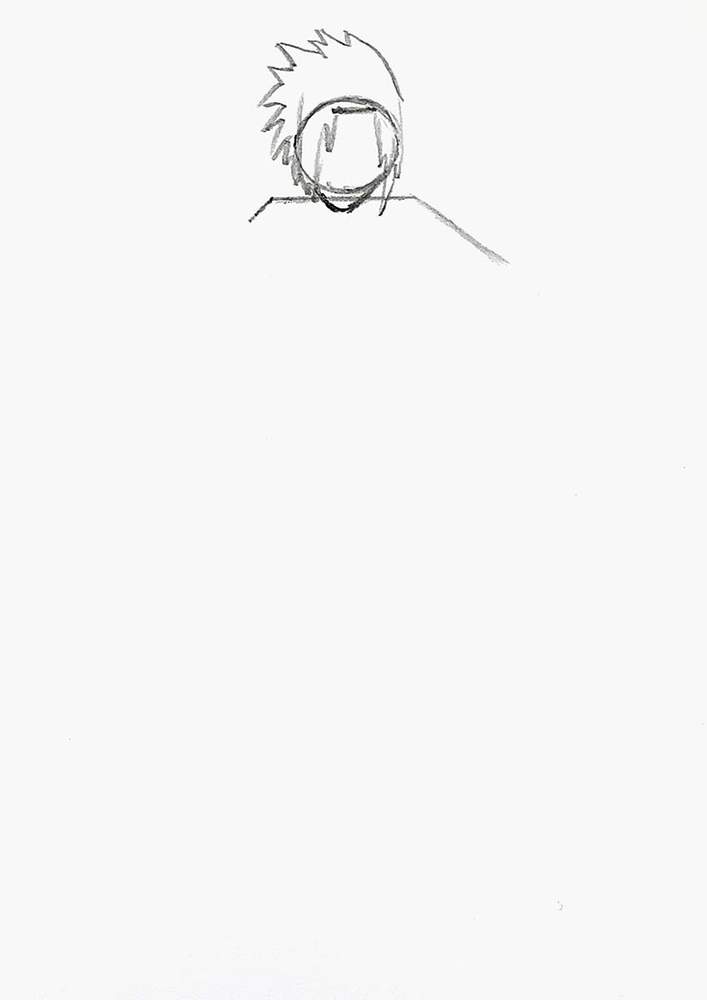 Step 2: Sketch Sasuke's Neck, Hair, And Shoulders