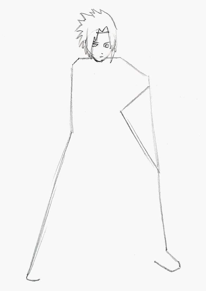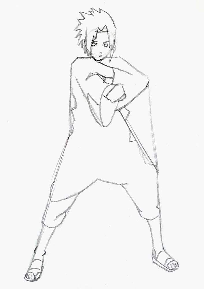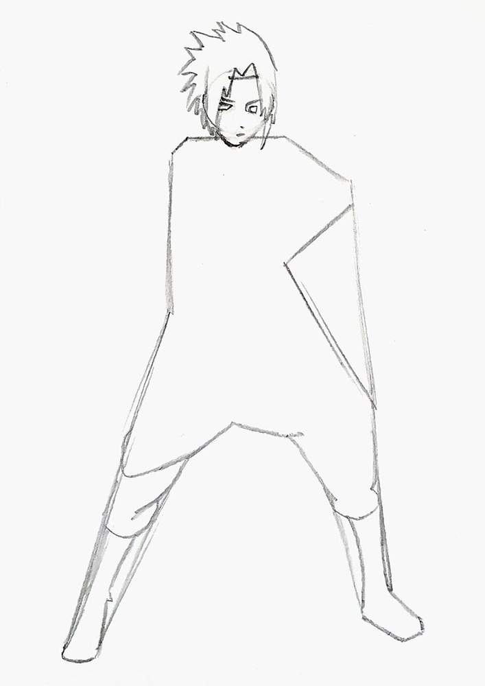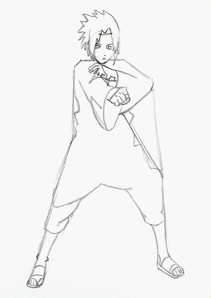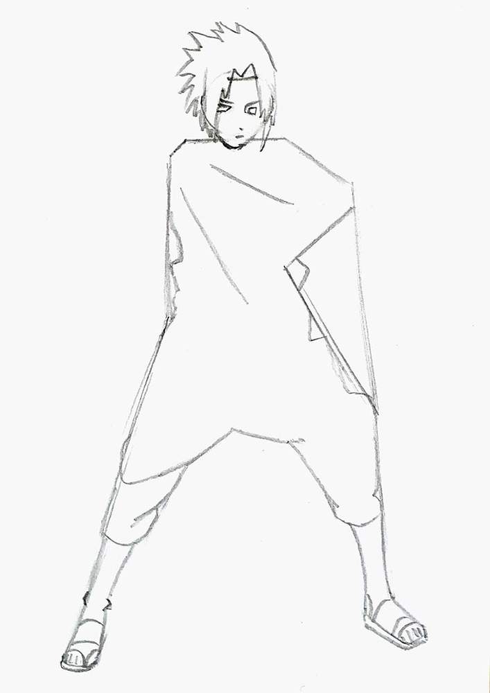 Step 4: Sketch The Outline Of Sasuke's Body & Sketch His Facial Features