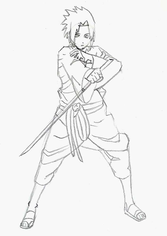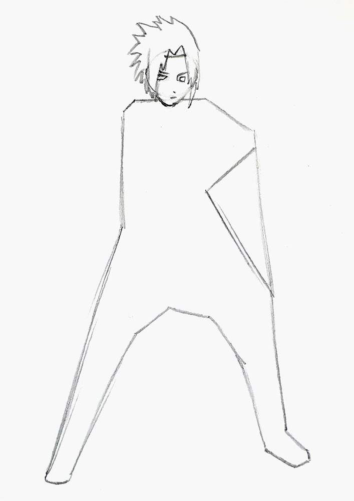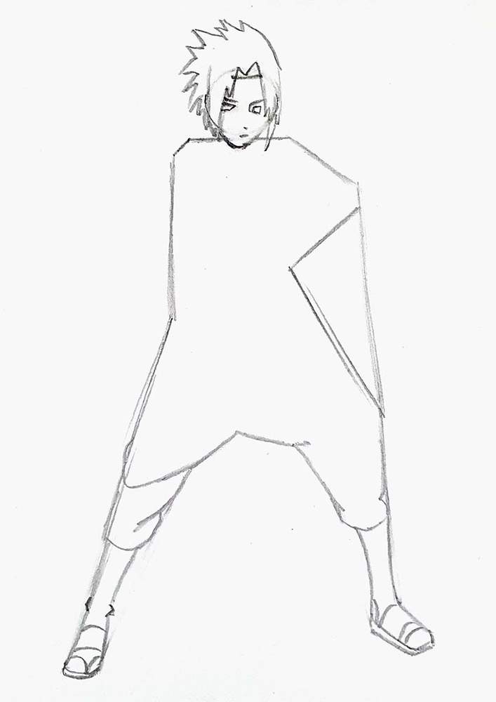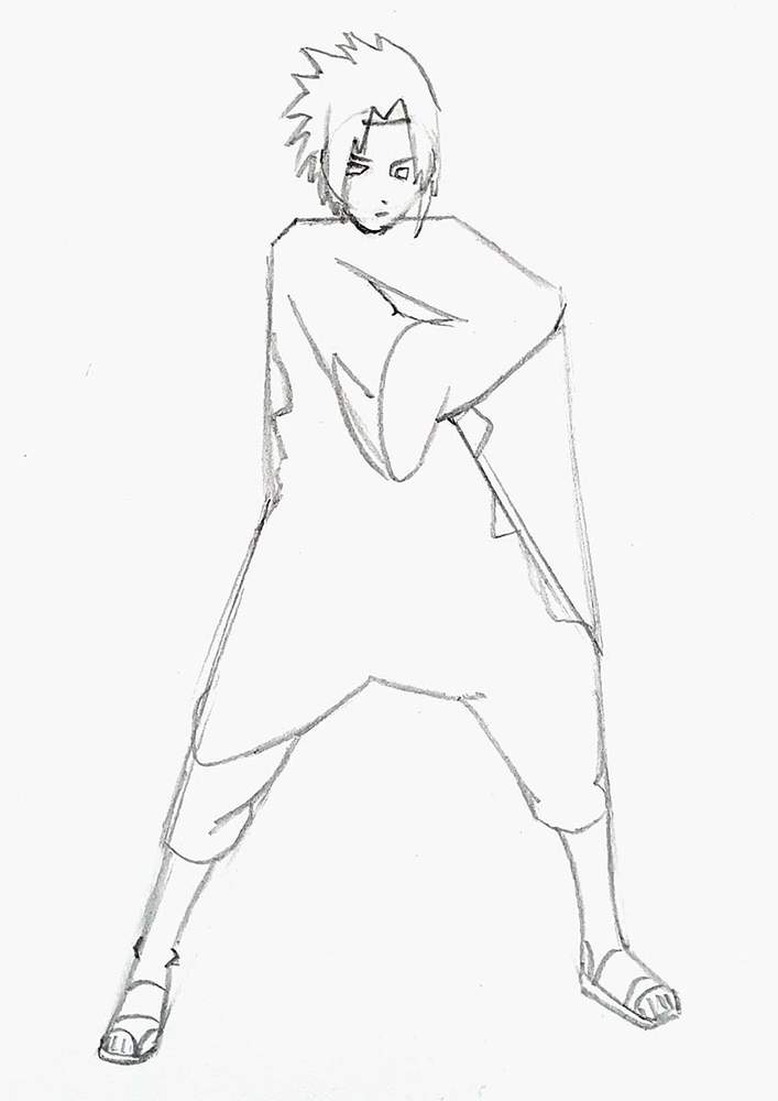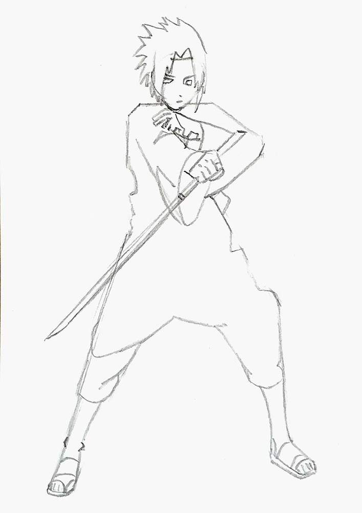 Step 4: Sketch The Outline Of Sasuke's Body & Sketch His Facial Features