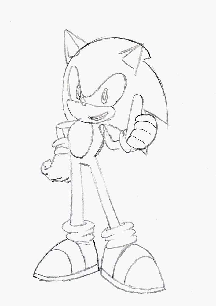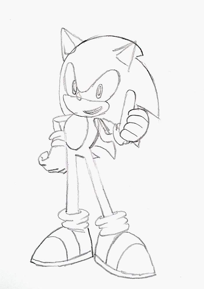 Next, I sketched Sonic's body.
