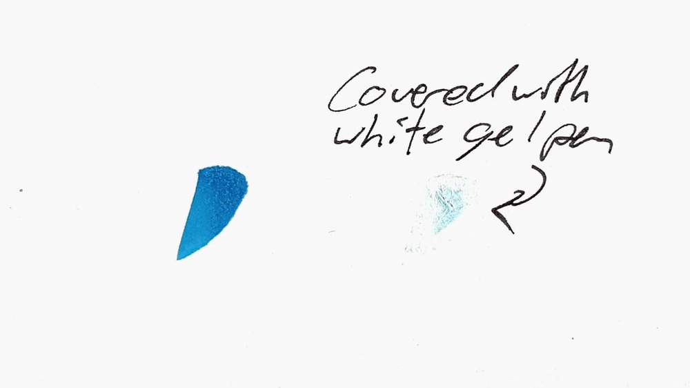Most white gel pens and paint markers are not perfectly white. So if you're trying to cover a mistake, but your paper a pure white, you'll still be able to see it a little bit.