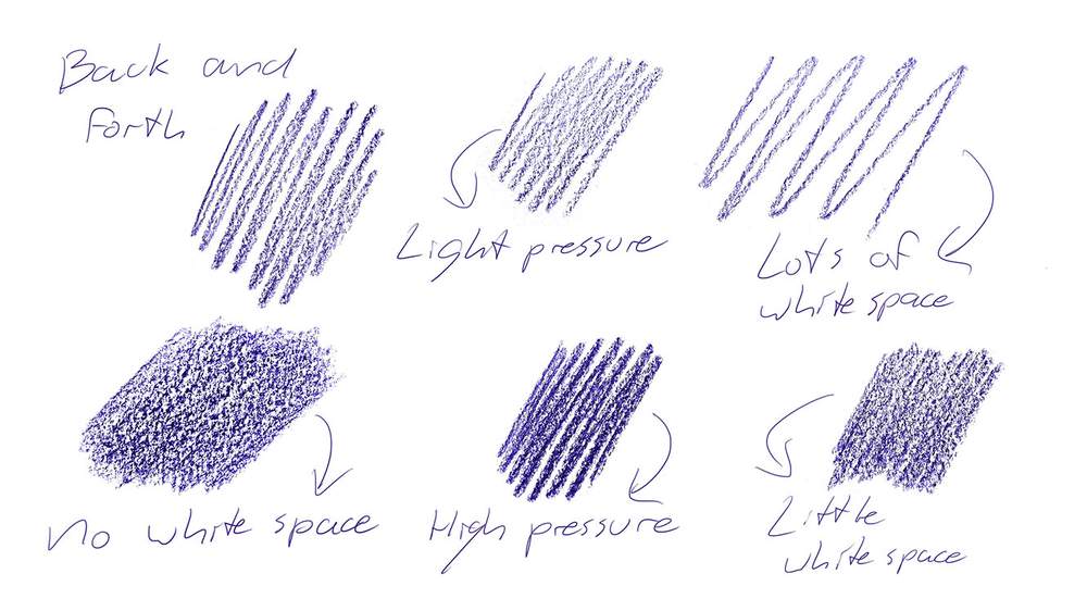 Drawing with colored pencils isn't just about coloring inside the lines. Different strokes can create a variety of textures and depth: