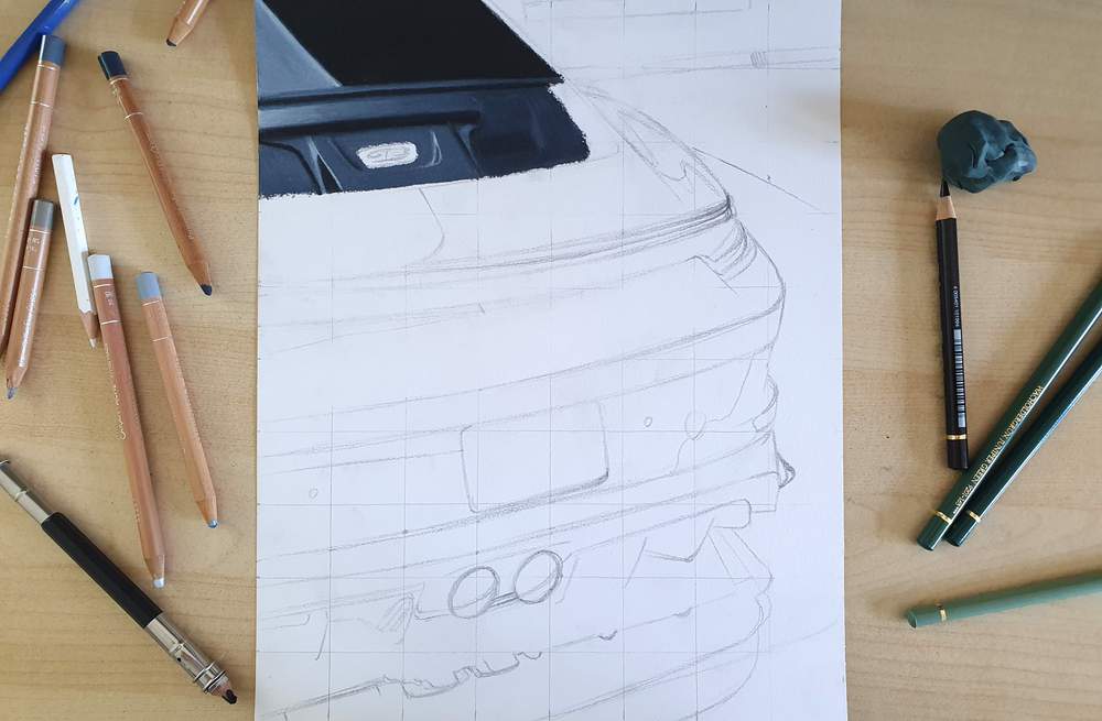 Then I started working on an Audi RS6. @auditography made a really beautiful photo of a dark blue RS6 in the mountains during a sunset. You can probably guess that this was one hell of a difficult photo to draw from. And after I messed up the front wheel I quit this drawing.