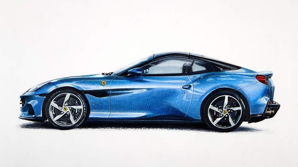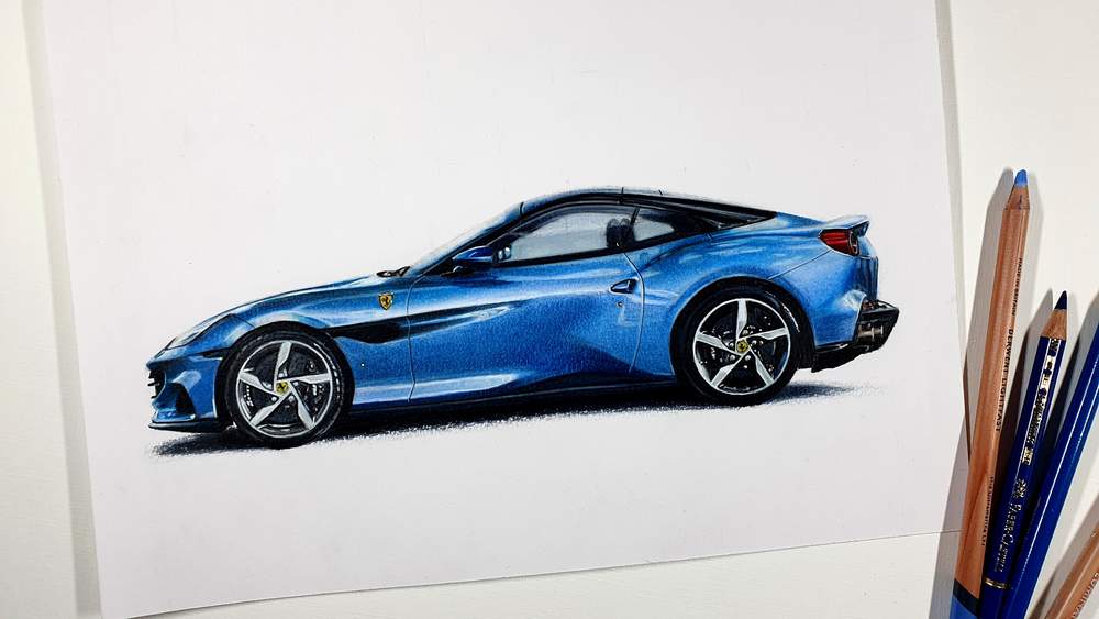 The Ferrari Portofino isn't actually the first drawing I started in the past year. I started 5 other drawings before this one. I think the Portofino is the first drawing I finished is because everything else is going well and I had time to make this drawing. This wasn't the case before I started this drawing.