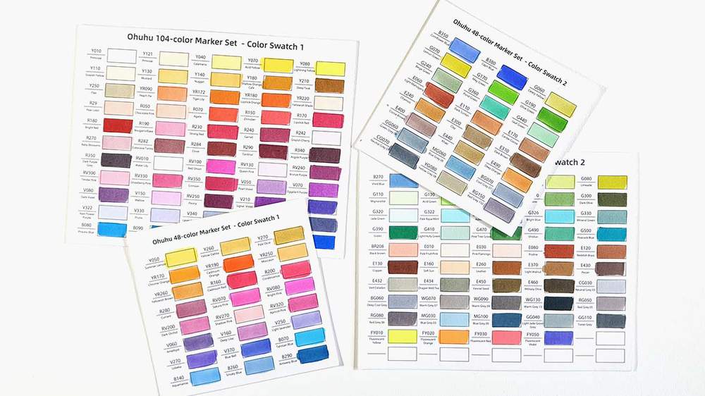 You'll also find empty color charts in the set, allowing you to swatch and organize your markers for quick reference. This makes it easy to see the exact shades in your collection and how they appear on paper, helping you choose the perfect color for your artwork.
