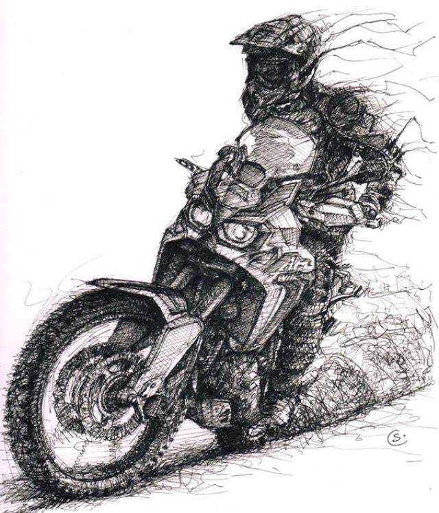 Motorcycles are not really my thing. I barely know anything about them. But I do really like the style in which this is drawn. I remember very well when I sketched something like this for drawing class the teacher said it was messy, but I really liked what I'd drawn. Maybe my drawing wasn't as good as these two, but it wasn't bad either.