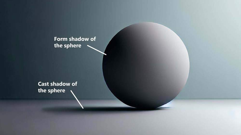 Now let's talk about shadows. They're not just dark areas in a drawing, they can also help show the shape and position of things. There are different types of shadows like cast shadows (the shadow an object makes on something else) and form shadows (the darker side of an object away from the light).