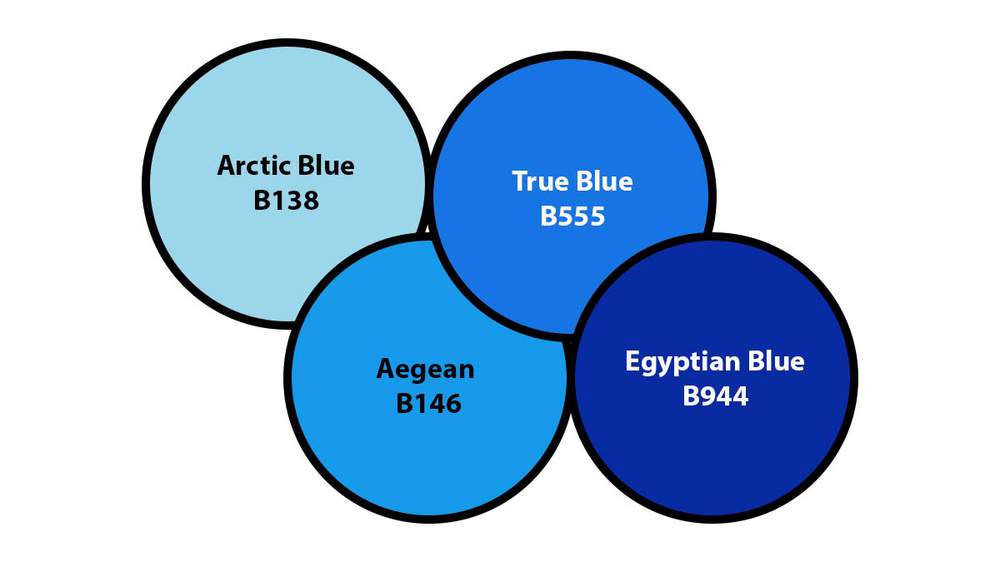 Arctic Blue (B138) → Aegean (B346) → True Blue (B555) → Egyptian Blue (B944)
