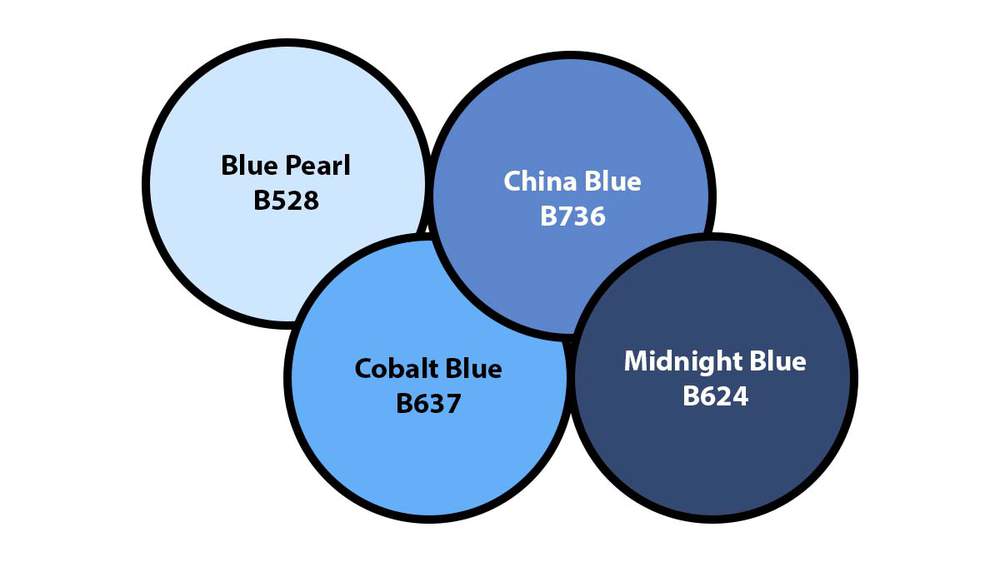 Blue Pearl (B528) → Cobalt Blue (B637) → China Blue (B736) → Midnight Blue (B624)