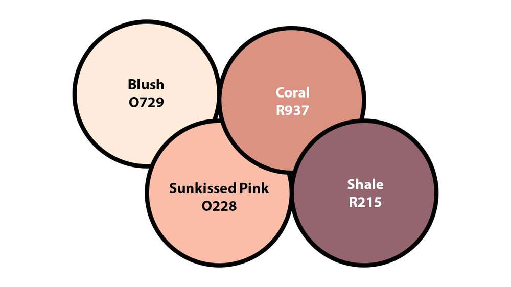 Blush (O729) → Sunkissed Pink (O228) → Coral (R937) → Shale (R215)