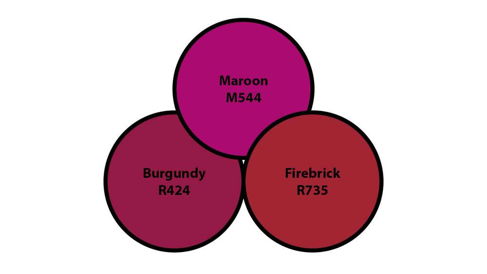 Burgundy (R424), Maroon (M544), Firebrick (R735)