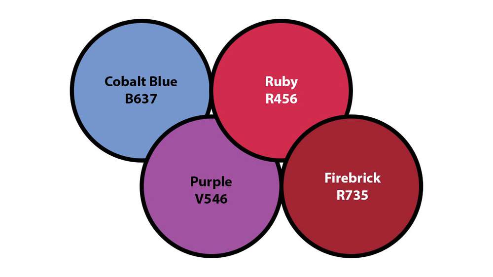 Cobalt Blue (B637) → Purple (V546) → Ruby (R456) → Firebrick (R735)