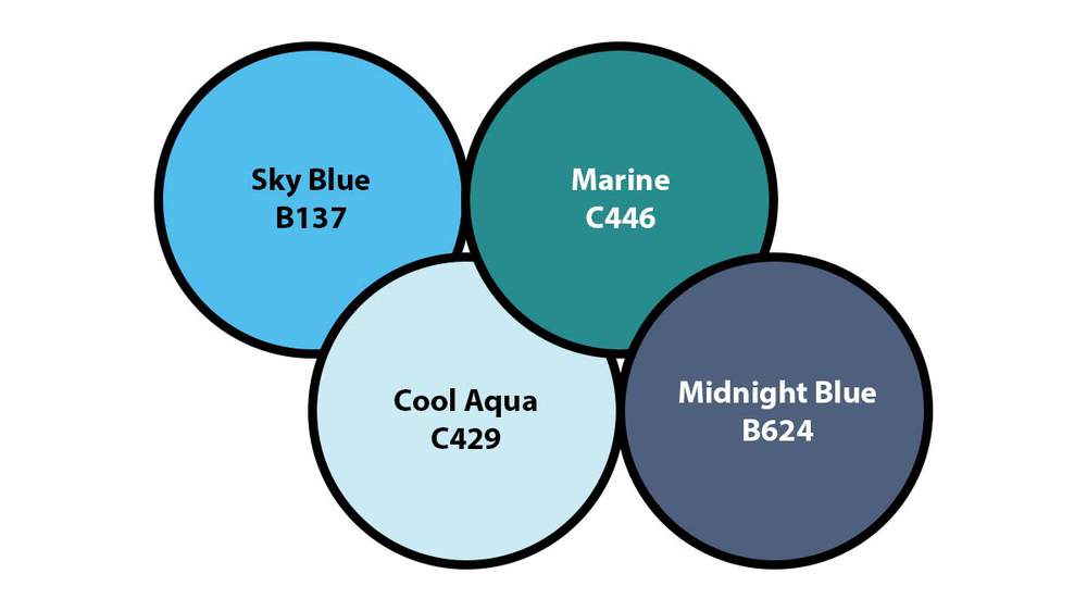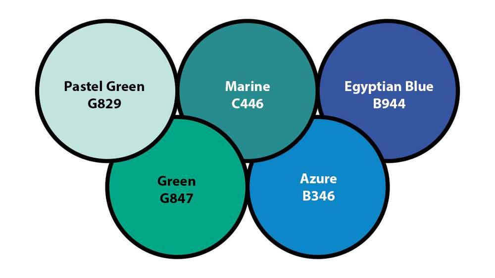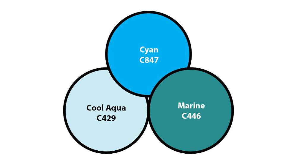 Cool Aqua (C429), Cyan (C847), Marine (C446)