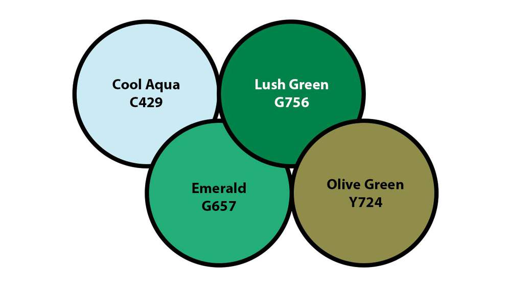 Cool Aqua (C429) → Emerald (G657) → Lush Green (G756) → Olive Green (Y724)