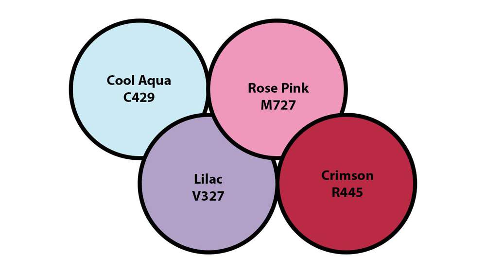 Cool Aqua (C429) → Lilac (V327) → Rose Pink (M727) → Crimson (R445)