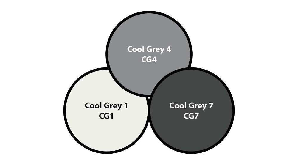 Cool Grey 1 (CG1), Cool Grey 4 (CG4), Cool Grey 7 (CG7)