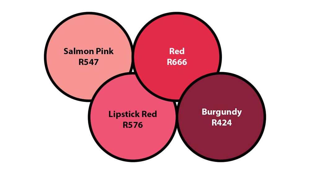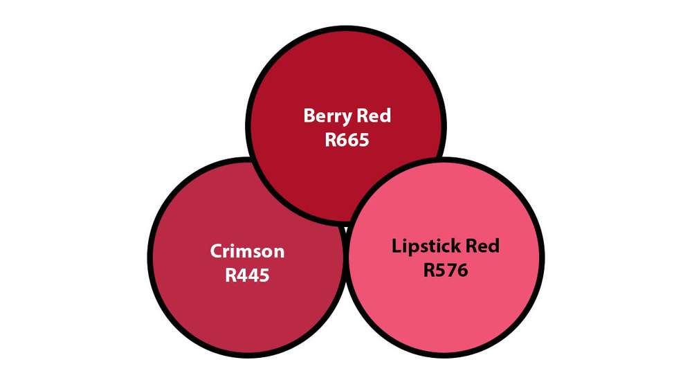 Crimson (R445), Berry Red (R665), Lipstick Red (R576)