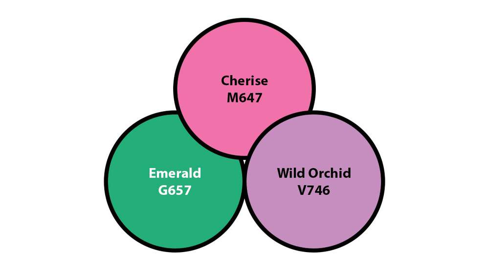Emerald (G657), Cerise (M647), Wild Orchid (V746)