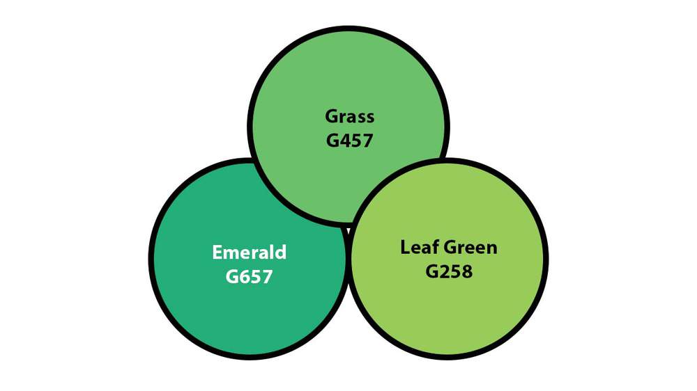 Emerald (G657), Grass (G457), Leaf Green (G258)