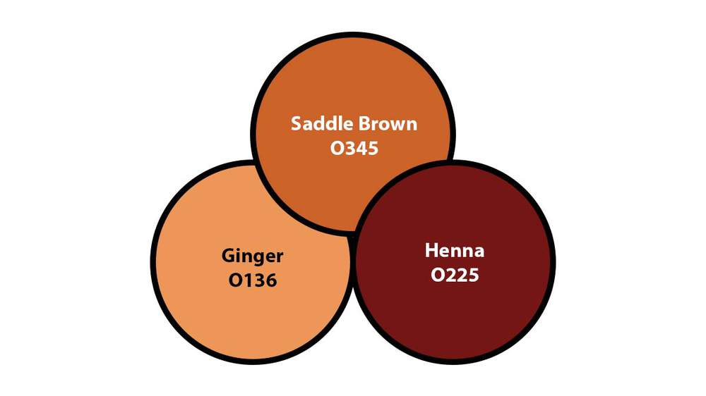 Ginger (O136) → Saddle Brown (O345) → Henna (O225)