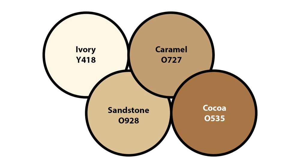Ivory (Y418) → Sandstone (O928) → Caramel (O727) → Cocoa (O535)