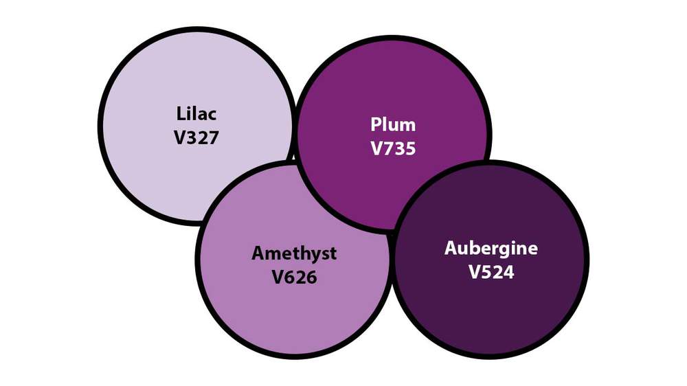 Lilac (V327) → Amethyst (V626) → Plum (V735) → Aubergine (V524)
