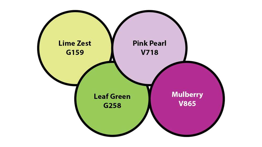 Lime Zest (G159), Leaf Green (G258), Pink Pearl (V718), Mulberry (V865)