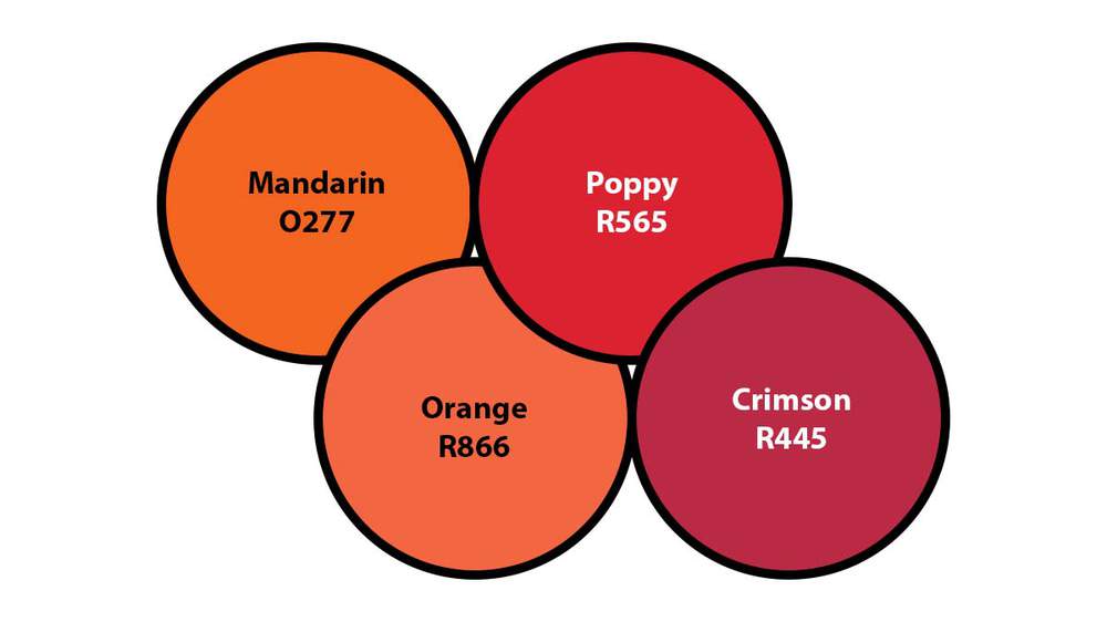 Mandarin (O277) → Orange (R866) → Poppy (R565) → Crimson (R445)