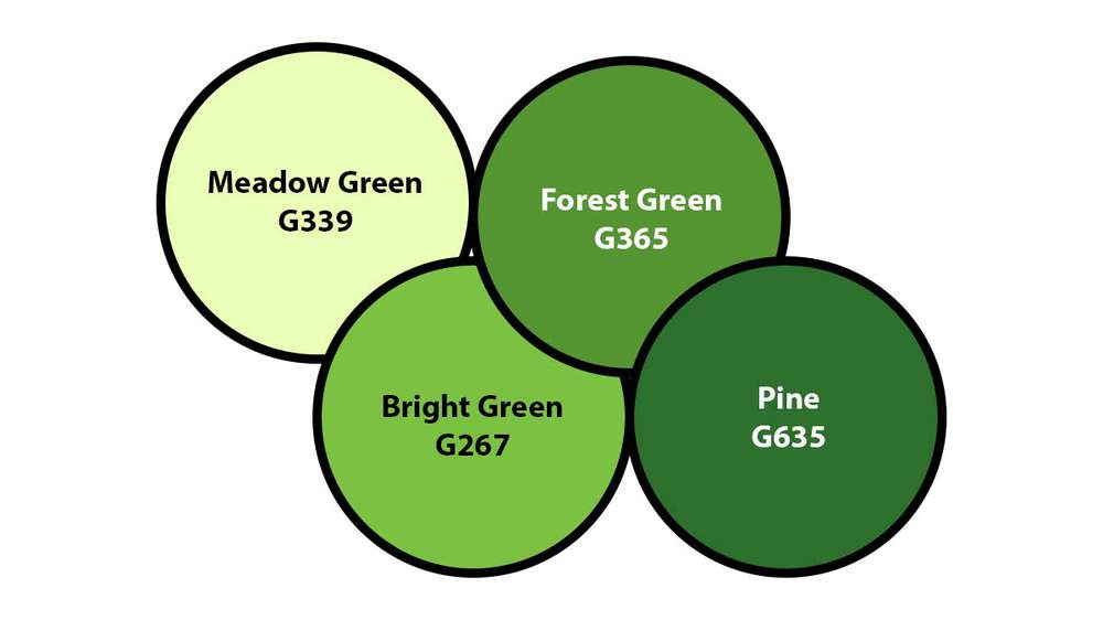 Meadow Green (G339) → Bright green (G267) → Forest Green (G356) → Pine (G635)