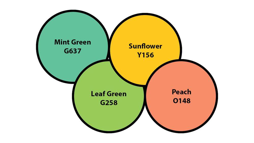 Mint Green (G637) → Leaf Green (G258) → Sunflower (Y156) → Peach (O148)