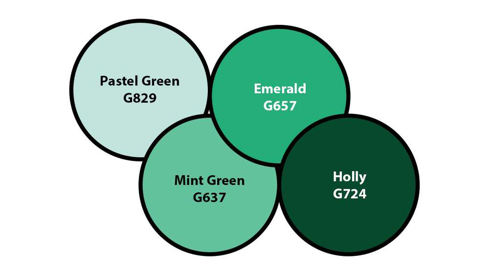 Pastel Green (G829) → Mint Green (G637) → Emerald (G657) → Holly (G724)
