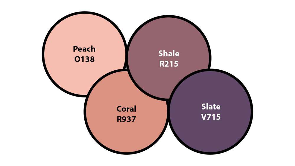 Peach (O148) → Coral (R937) → Shale (R215) → Slate (V715)