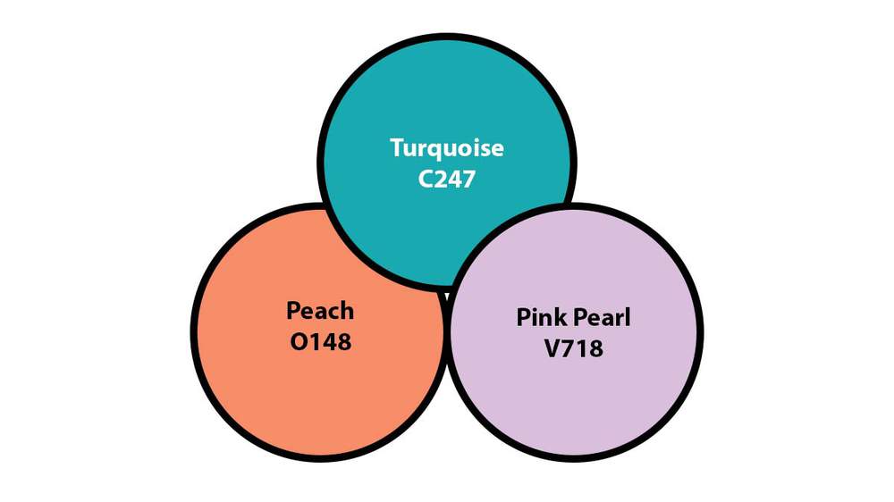 Peach (O148), Turquoise (C247), Pink Pearl (V718)