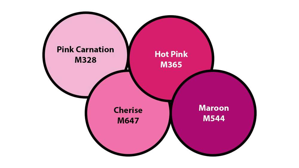 Pink Carnation (M328) → Cherise (M647) → Hot Pink (R365) → Maroon (M544)
