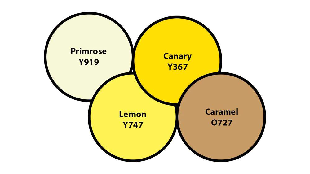 Primrose (Y919) → Lemon (Y747) → Canary (Y367) → Caramel (O727)