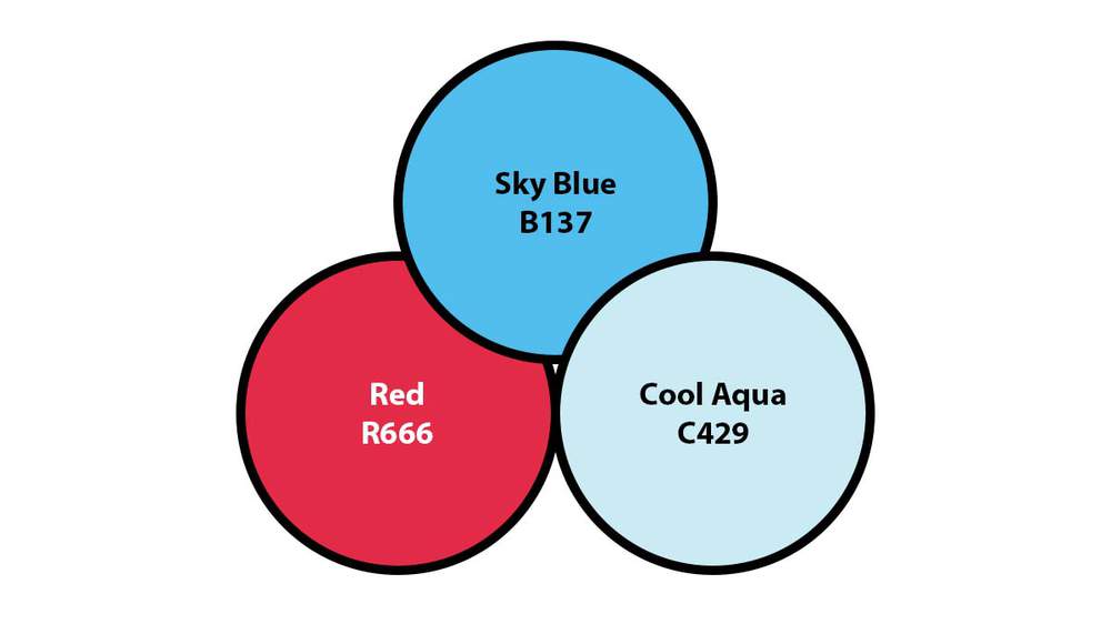 Red (R666), Sky Blue (B137), Cool Aqua (C429)