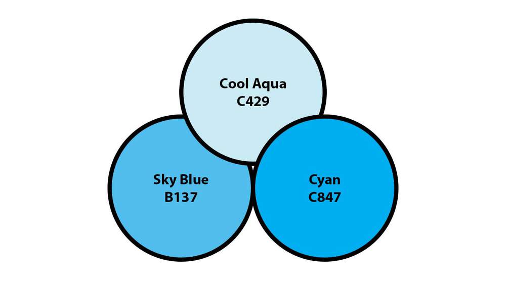 Sky Blue (B137), Cool Aqua (C429), Cyan (C847)