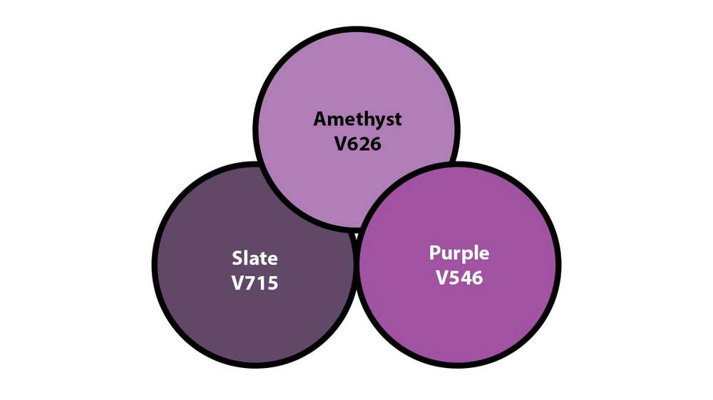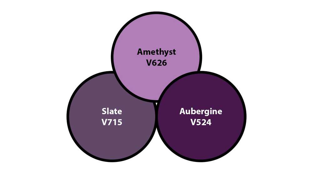 Slate (V715), Amethyst (V626), Aubergine (V524)