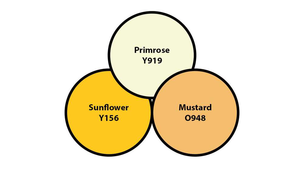 Sunflower (Y156), Primrose (Y919), Mustard (O948)