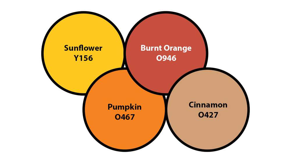 Sunflower (Y156) → Pumpkin (O467) → Burnt Orange (R946) → Cinnamon (O427)