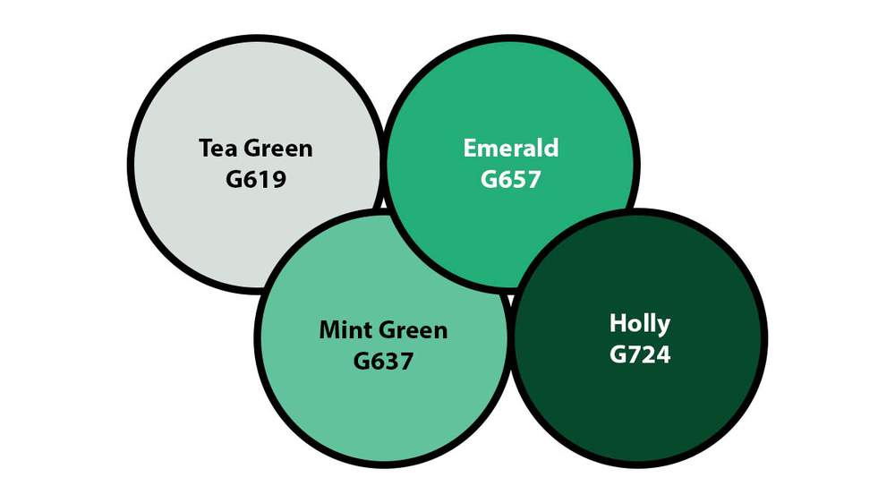 Tea Green (G619) → Mint Green (G637) → Emerald (G657) → Holly (G724)
