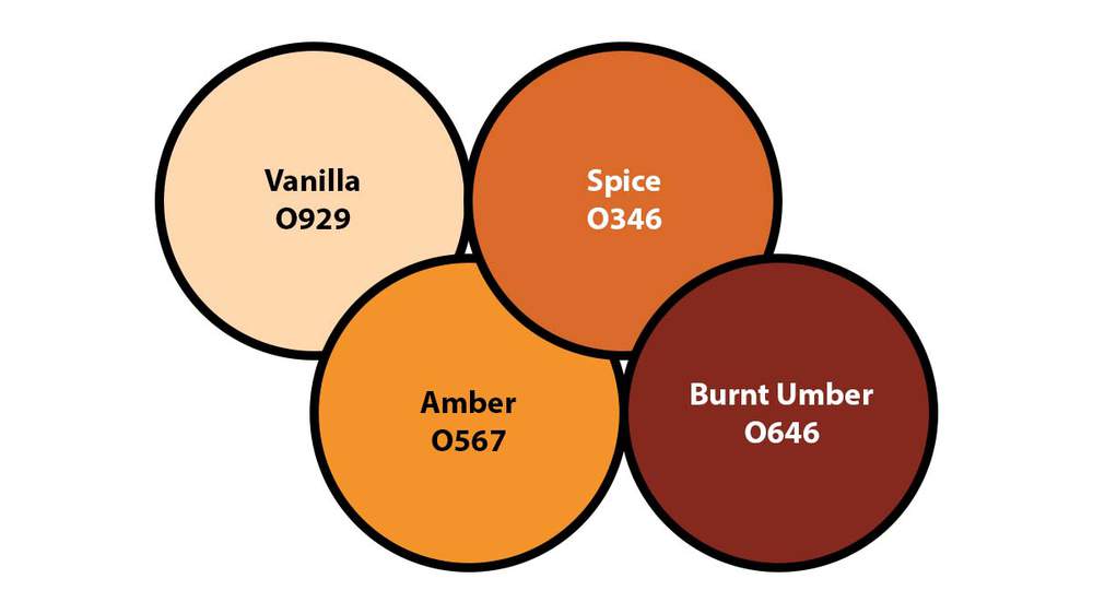 Vanilla (O929) → Amber (O567) → Spice (O346) → Burnt Umber (R646)